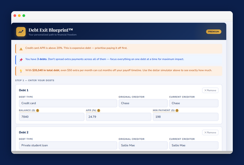 Debt Exit Blueprint™ — Interactive Debt Payoff Planner